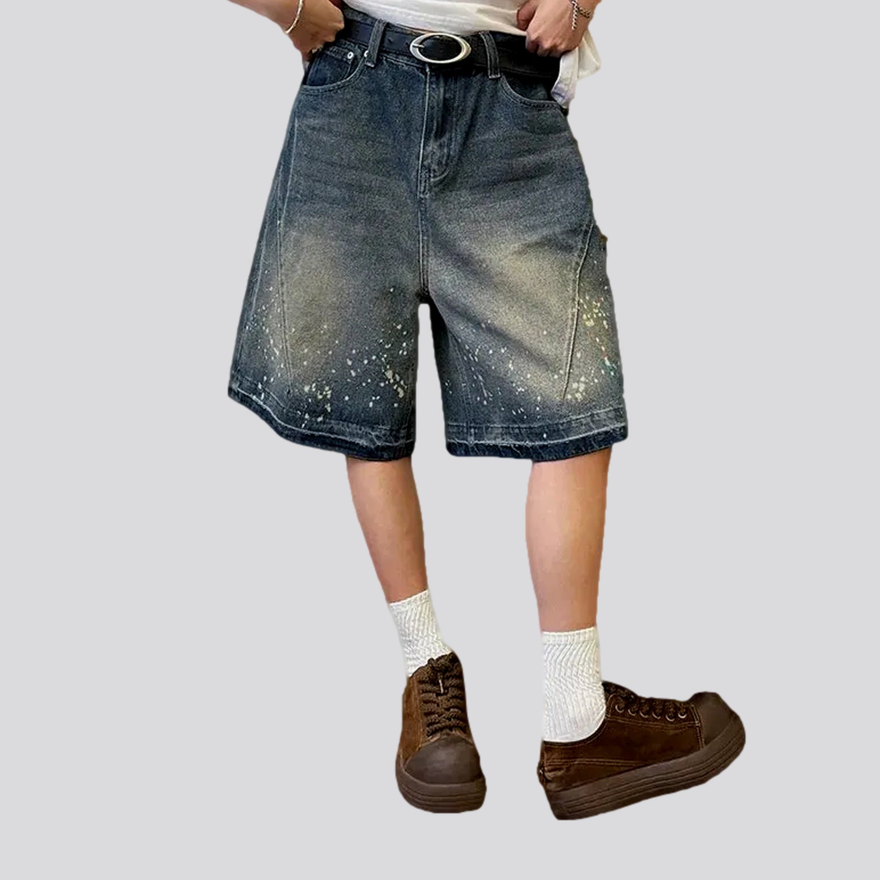 Retro Style Paint Baggy Denim Shorts for Men | Jeans4you.shop