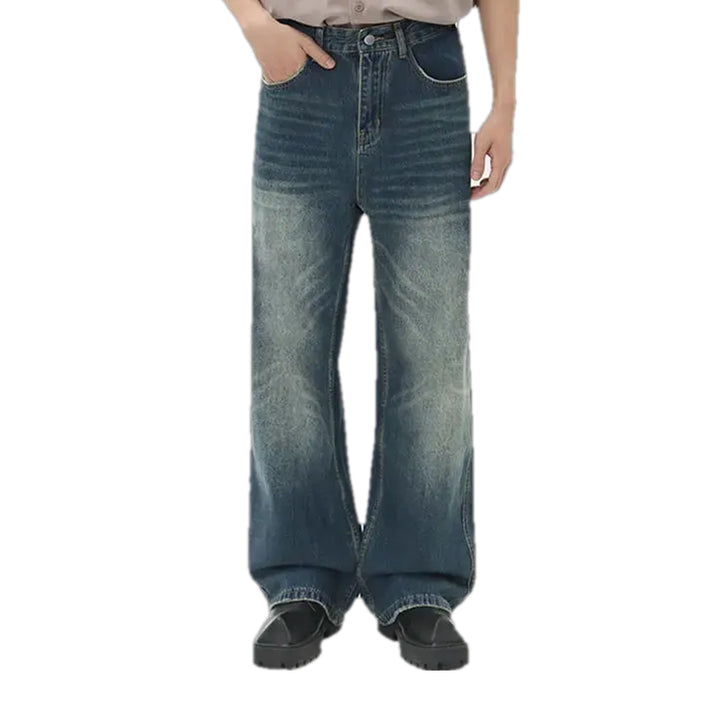 Roomy Boho Style Medium Rise Men's Jeans - Blue
