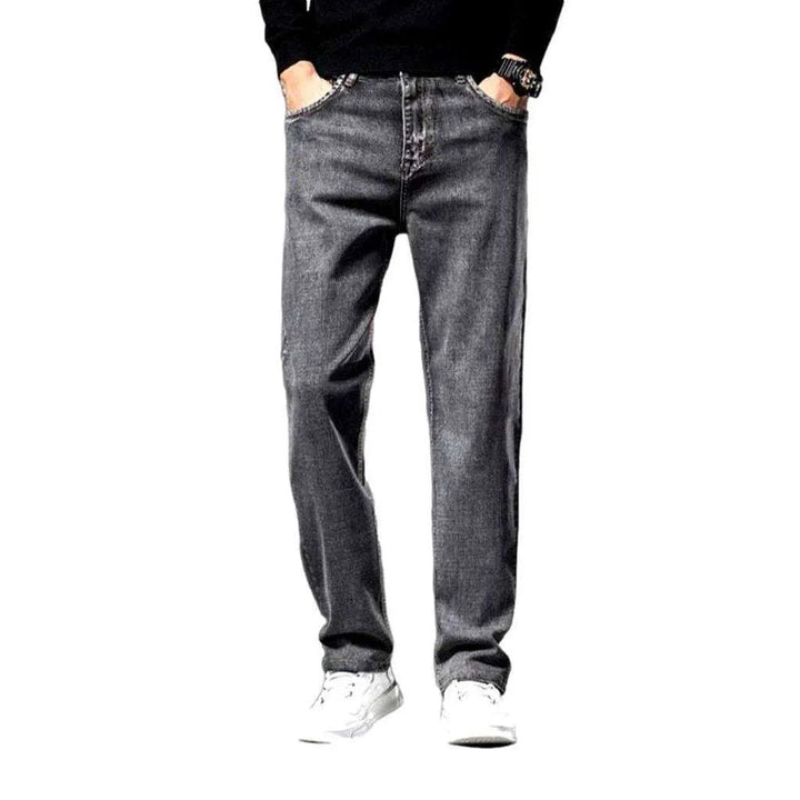 Introducing 2023 Autumn Collection's casual, stonewashed, straight, tall-waist, zipper & button closure Men's Jeans – a must-have for any style-savvy wardrobe!