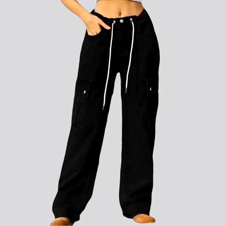 • Drawstrings: The drawstrings on these jeans add a playful and fashion touch, allowing you to adjust the waist for your perfect fit.