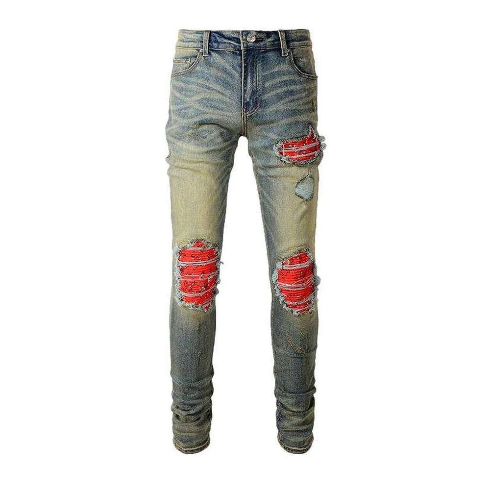 Cracked patch skinny men's jeans
